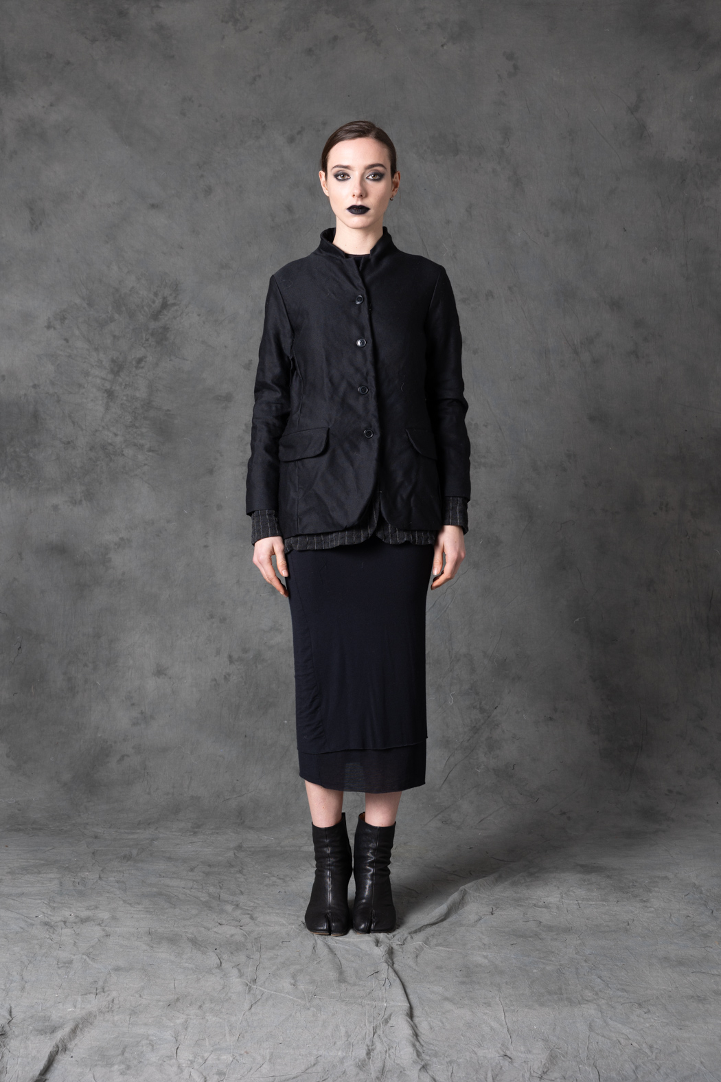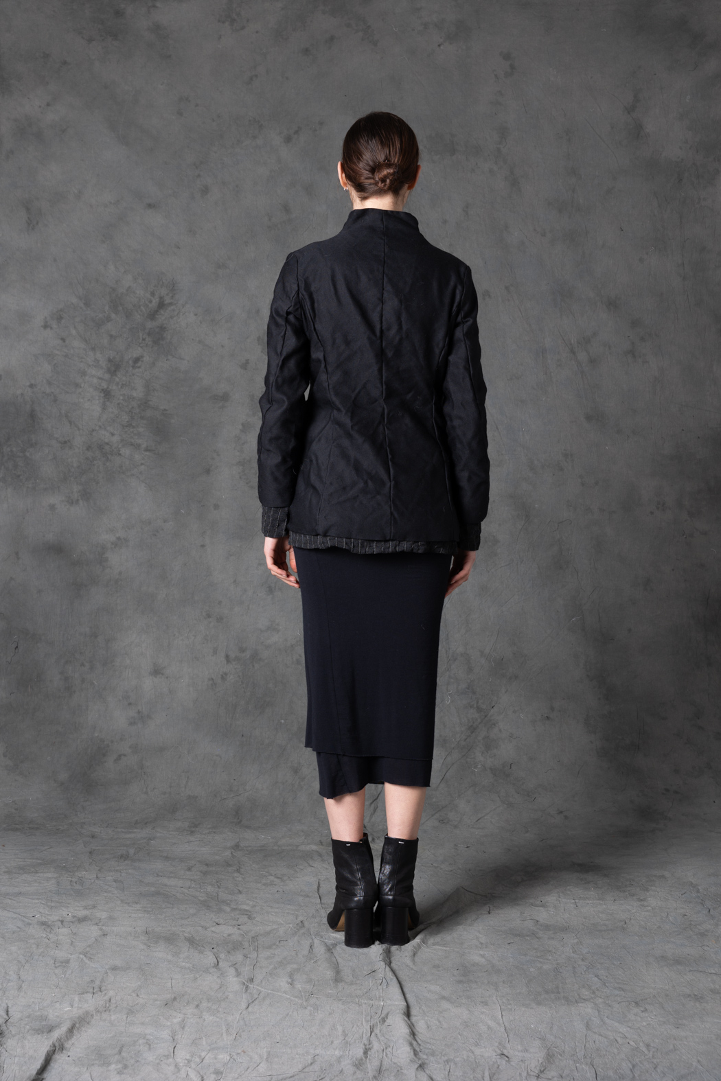 A lightweight jacket crafted from two contrasting fabrics. Minimal, versatile, and subtly textured, it offers quiet refinement with an experimental undertone.