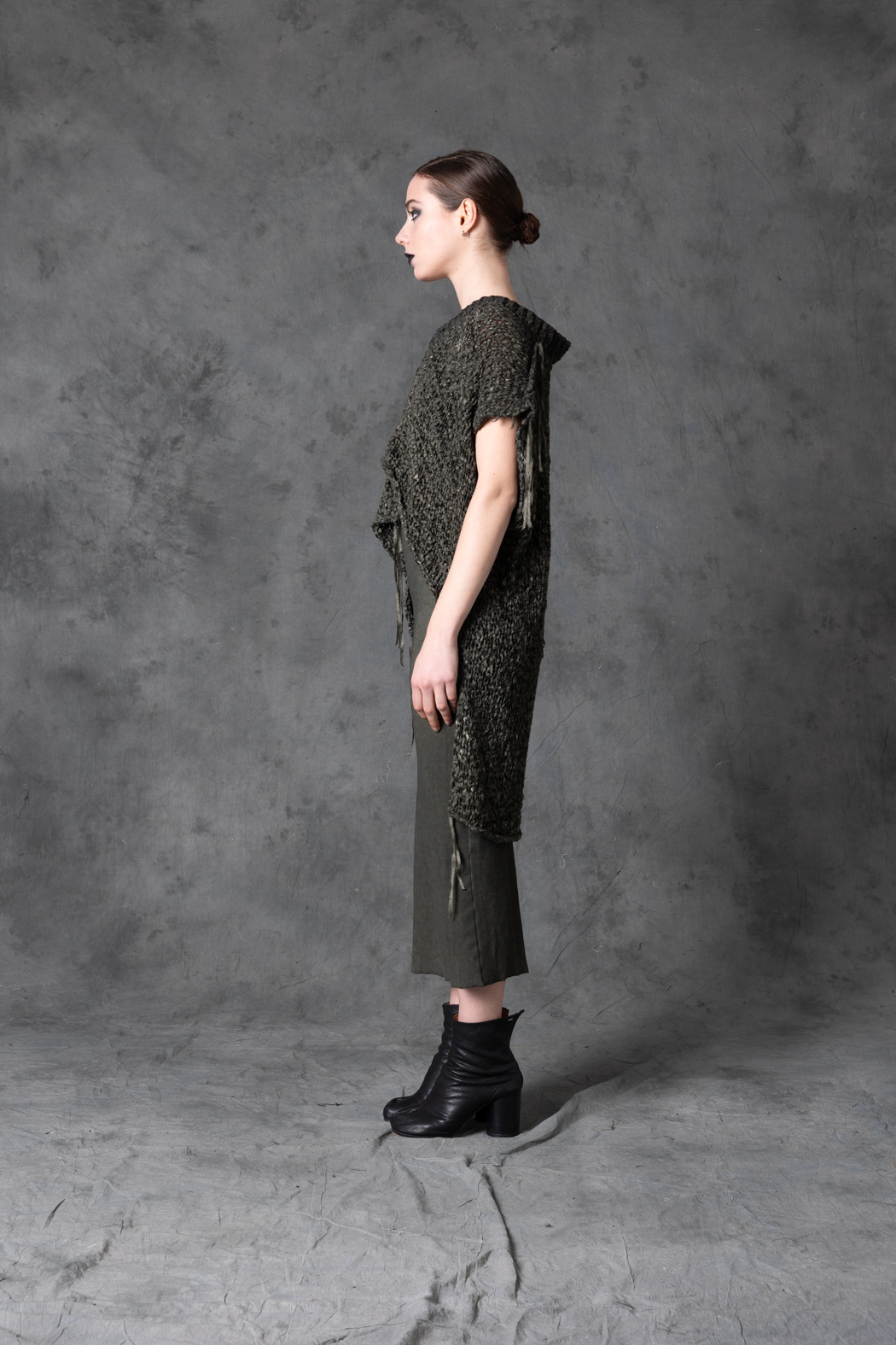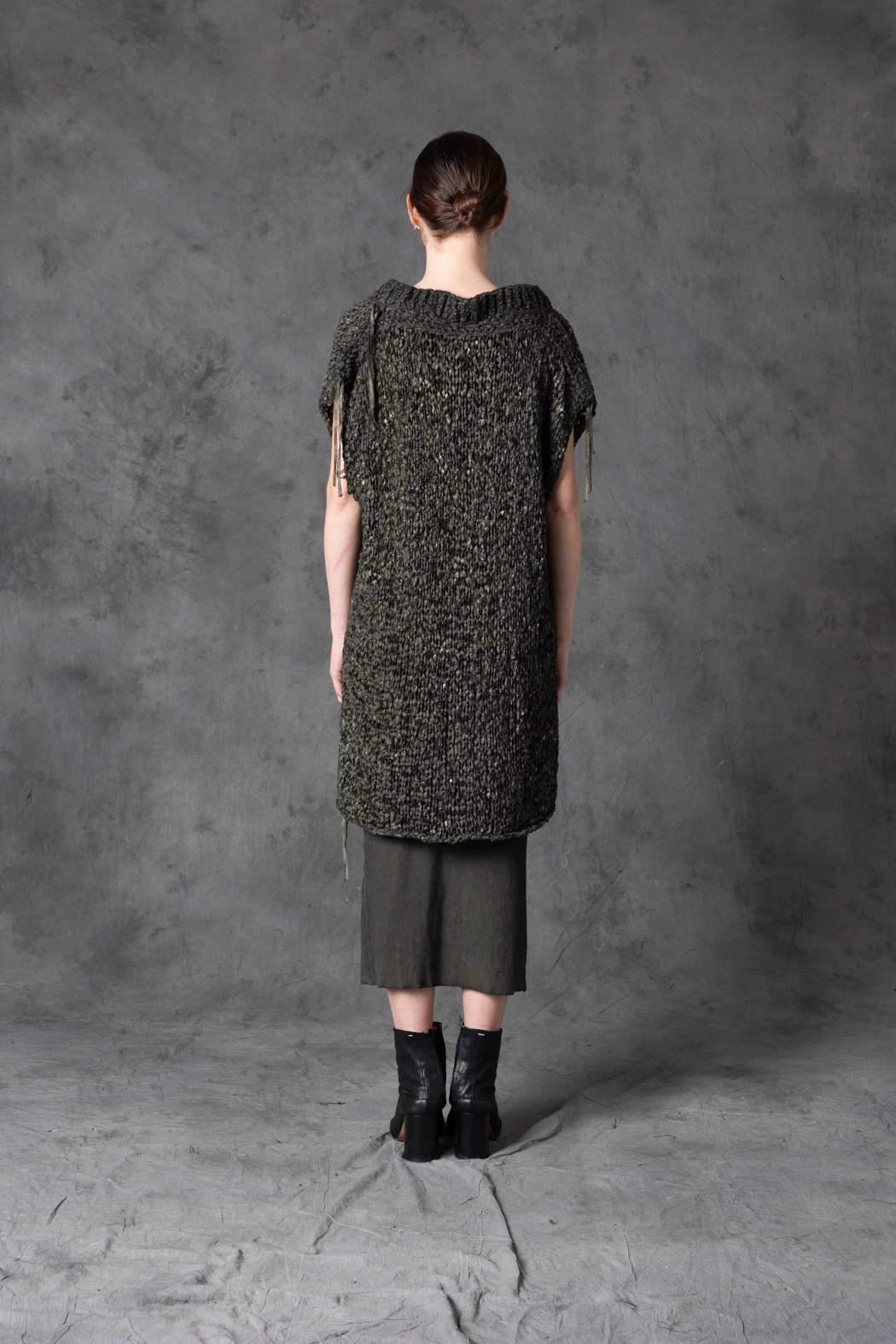 A fully hand-knitted cotton sweater with a raw, sculptural texture. Imperfect, tactile, and expressive—an artisanal piece with strong visual impact.