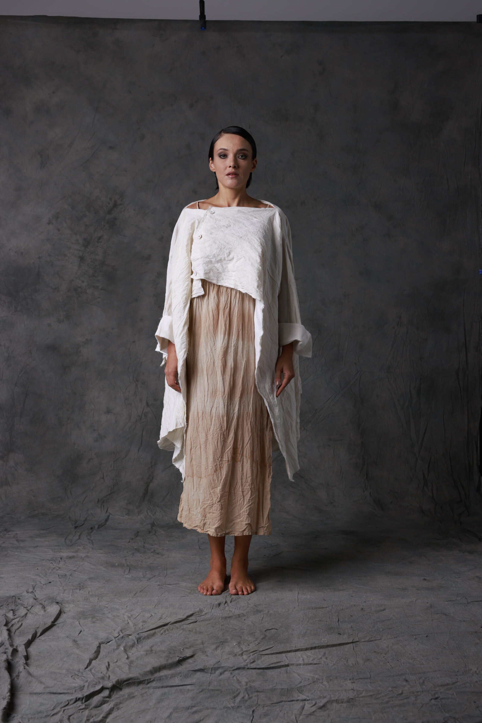 Inspired by the shifting forms of sand dunes, Dune Coat drapes the body in softness and quiet structure. A refined essential for cooler spring days, made from breathable, noble fibers.