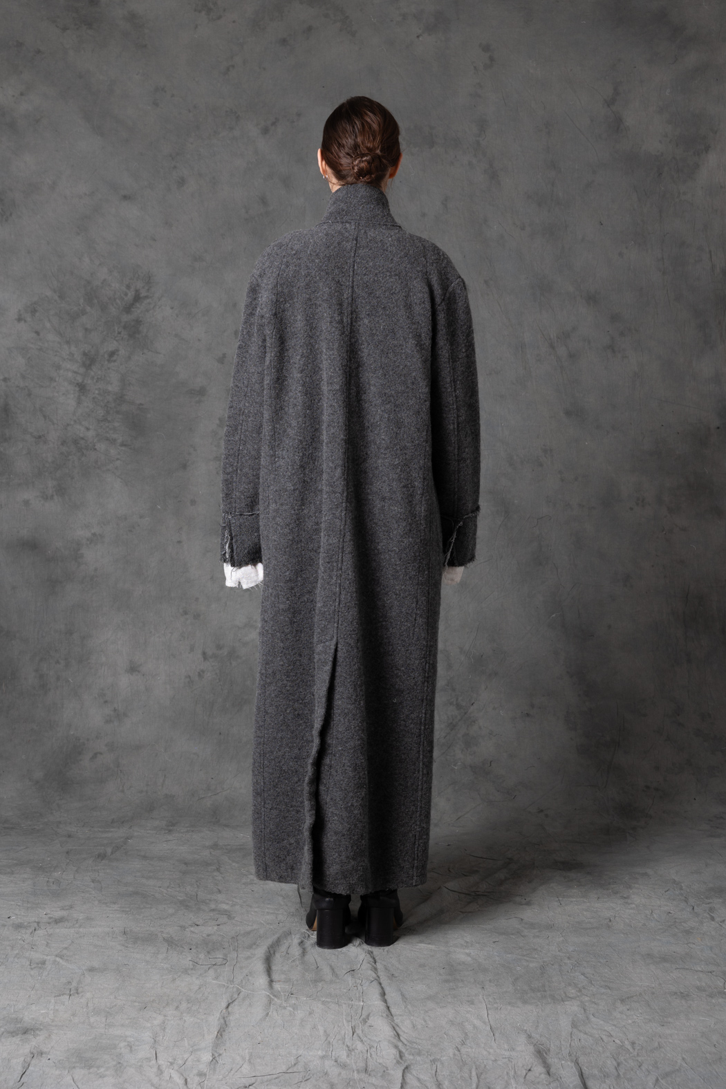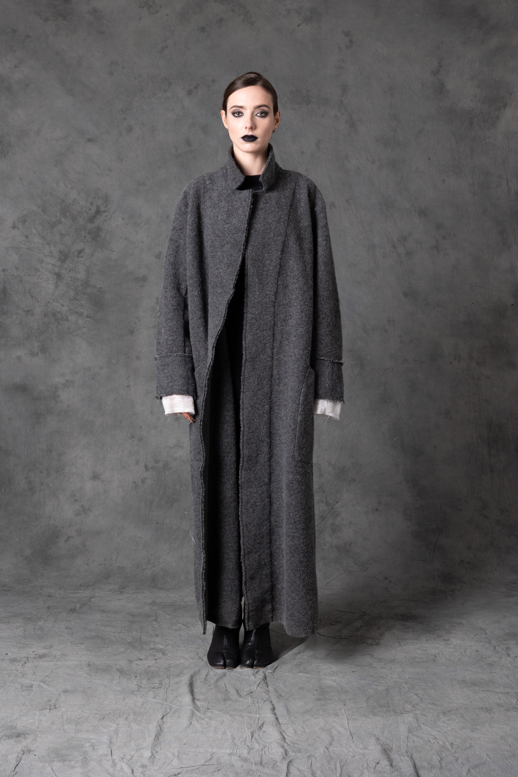 A study in pure minimalism. The L.S.F. Overcoat stretches into a clean, uninterrupted silhouette, crafted in natural fibers for fluid movement. Timeless, architectural, and deeply essential.