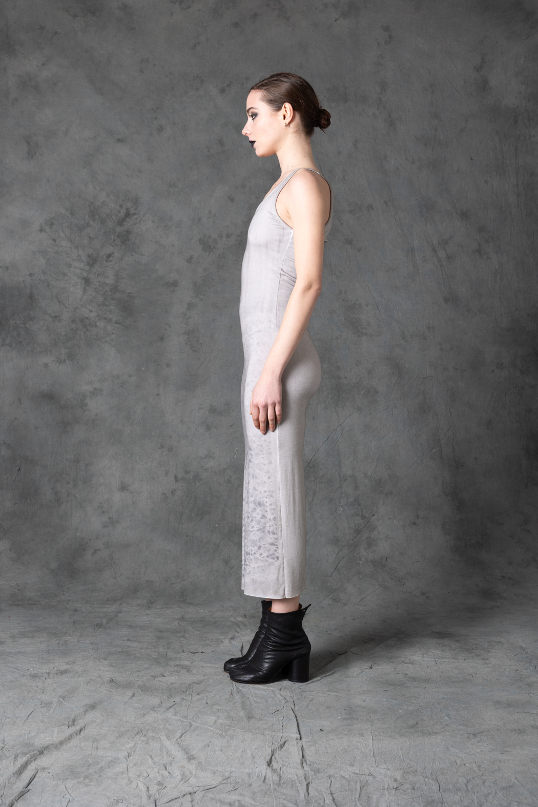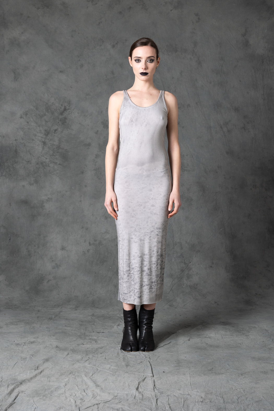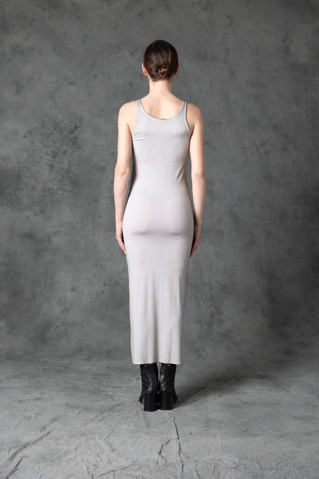 A minimalist tubo dress in pure cotton, shaped with serene precision. Light, clean, and understated, it offers a versatile foundation for layered avant-garde compositions.