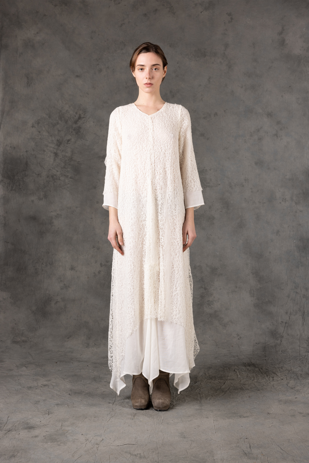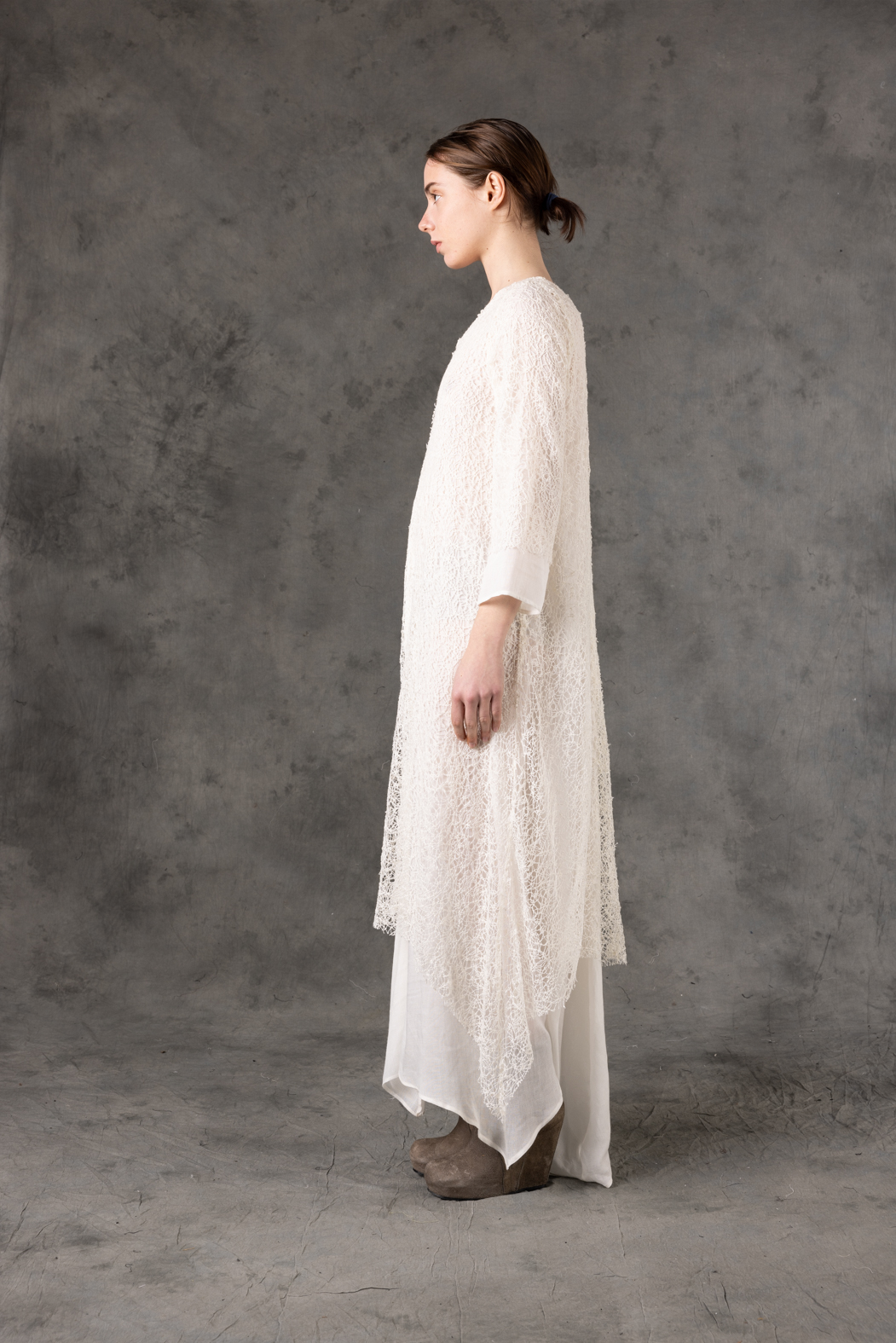 Structured yet soft, like a mast swaying in the wind. The Mast Dress features a play on textures and density. With architectural lines and noble fibers, it feels equally at home in motion or at rest. A quiet statement dress.