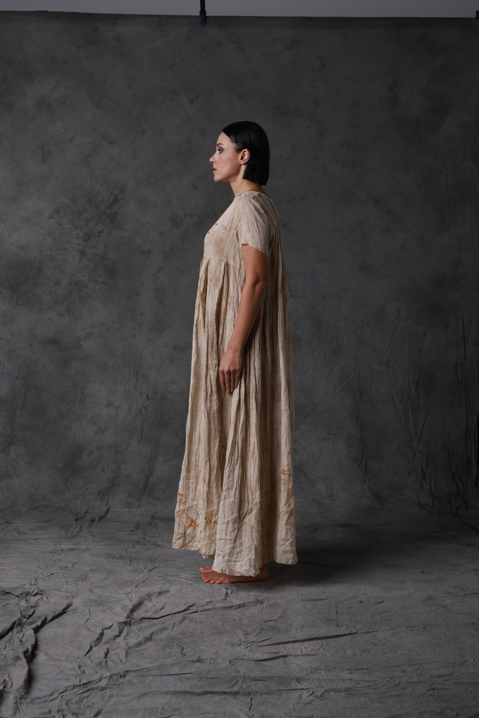 Crafted entirely from nettle fiber, Meadow Dress is a timeless piece that honors ancient, sustainable materials. With its clean lines and textured surface, it’s made for those who value quiet luxury and natural innovation.