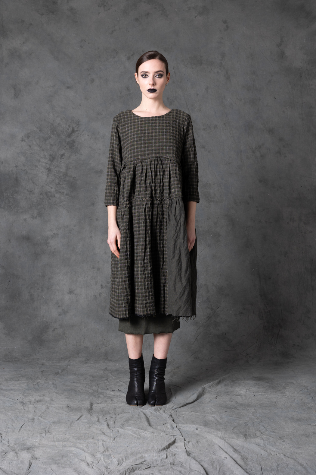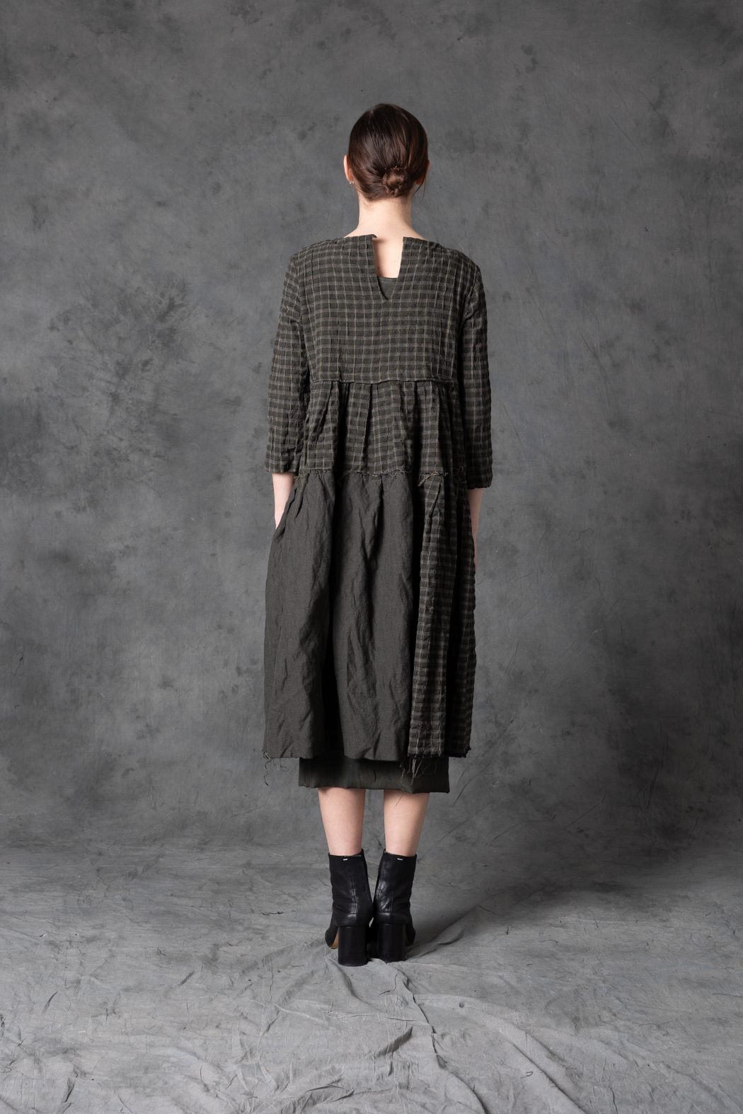 A two-fabric dress combining wool and viscose with a double-layer effect. Soft, modern, and architectural, it shapes the body with effortless sophistication.
