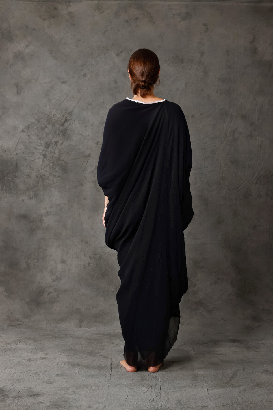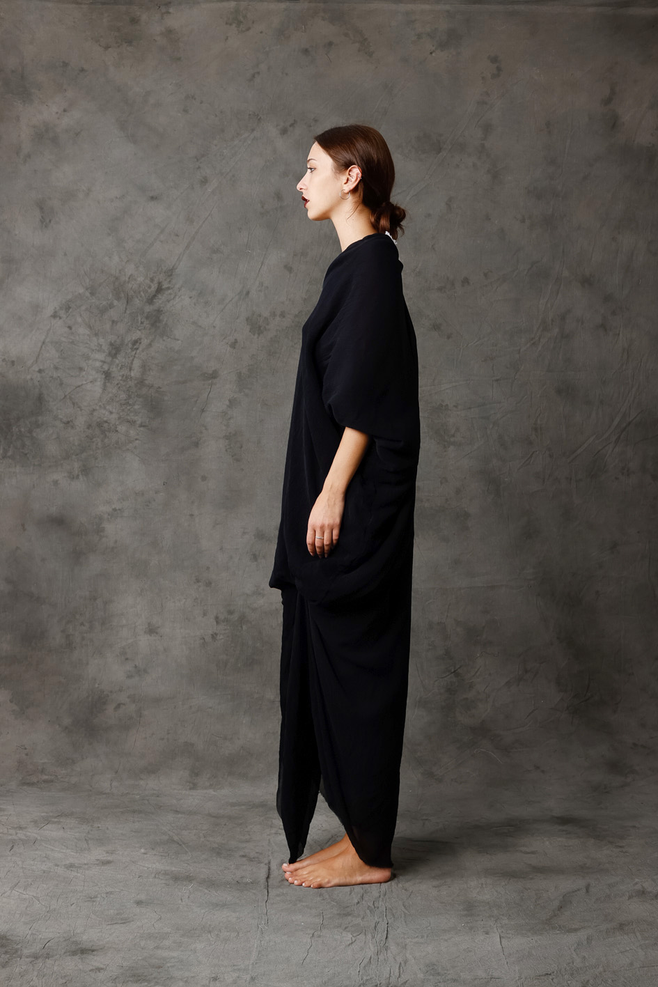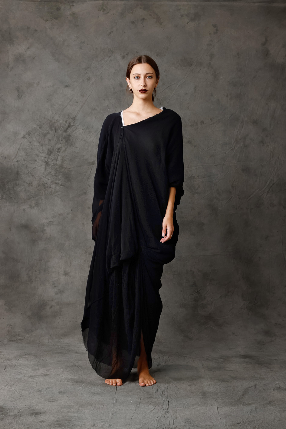 Wide, long asymmetrical silk dress w/panel to fix or not in the front